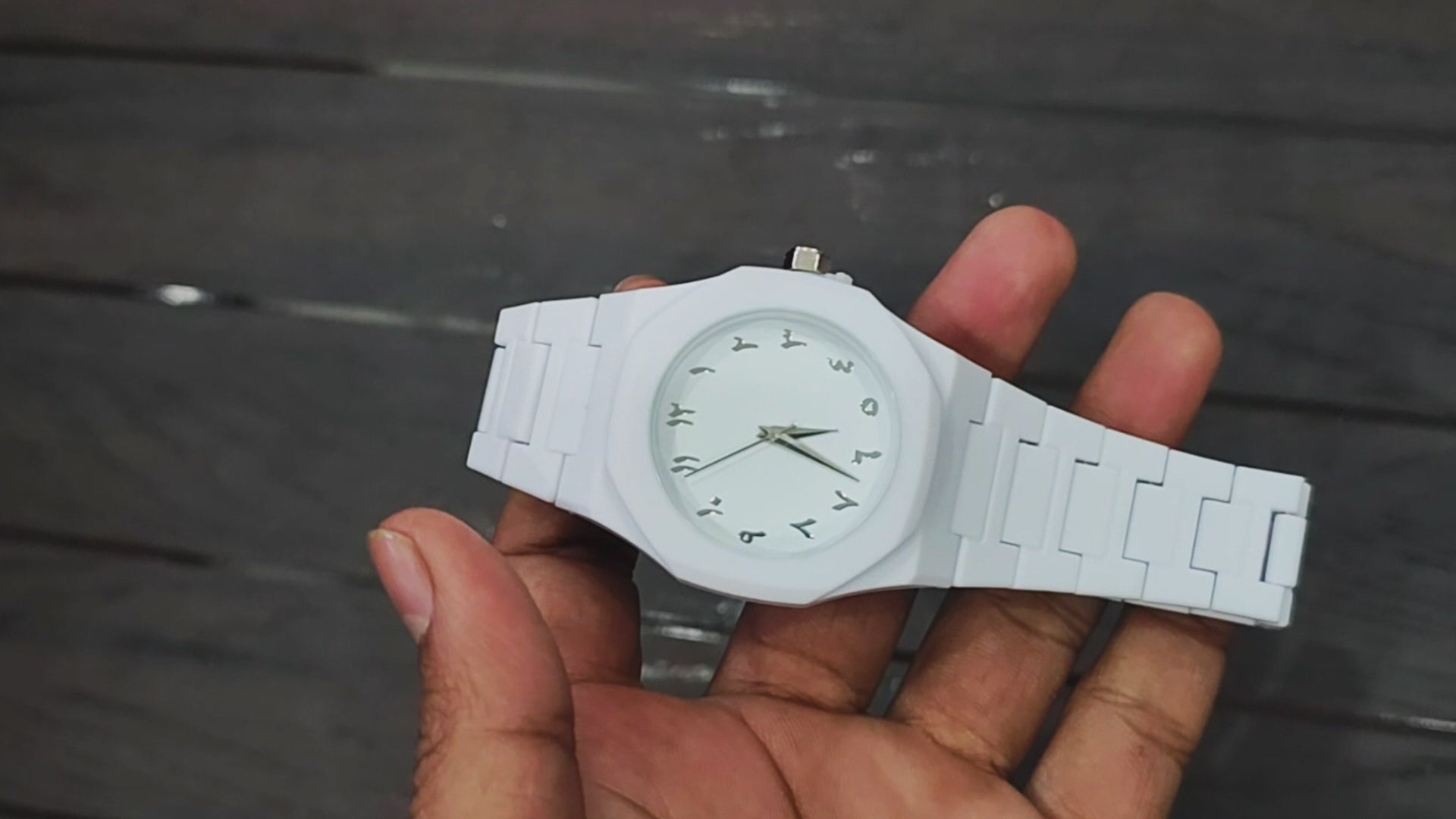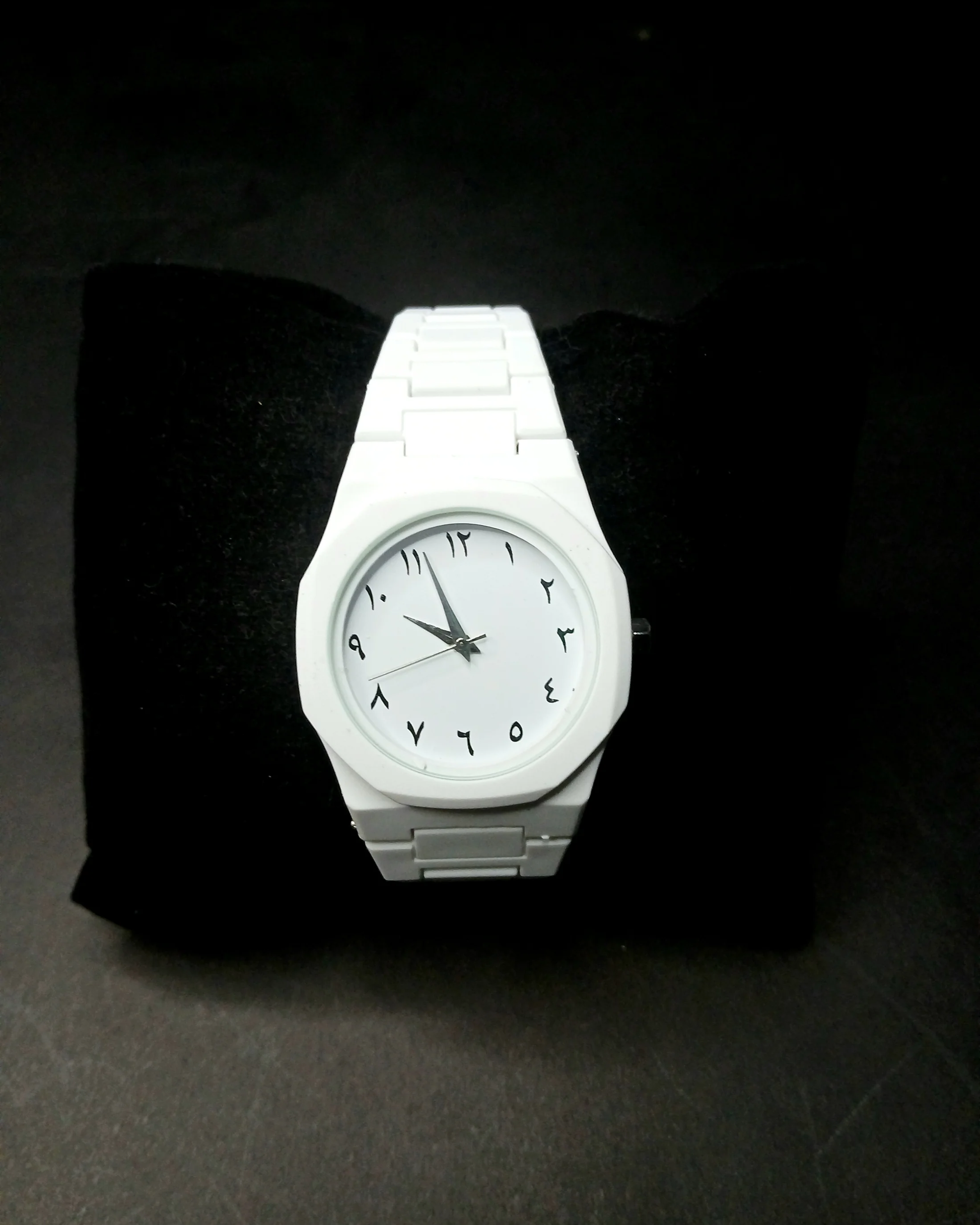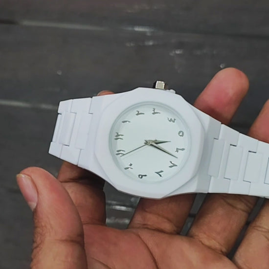 Arabian | Aura Dial & Polycarbonate (Platic) Charcoal Minimalist Analog Arabian Numeral | Premium Stylish Man Watch for Men Arabic (White)