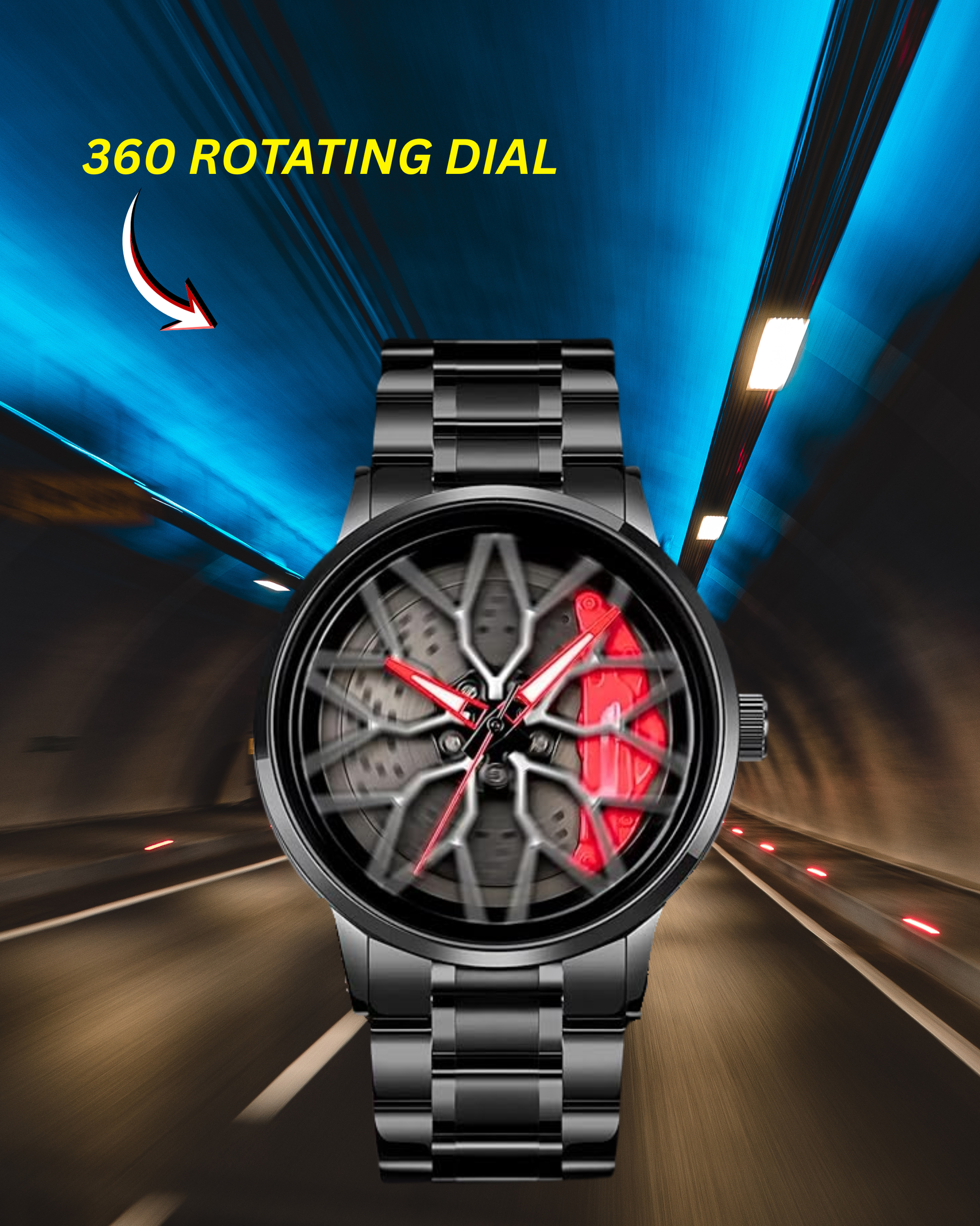 Men's Sport Quartz Watch Car Wheel Dial 360 Rotating Casual Fashion Stainless Steel Alloy Mens &Boy's Luxury Metal Gift Creative Watch